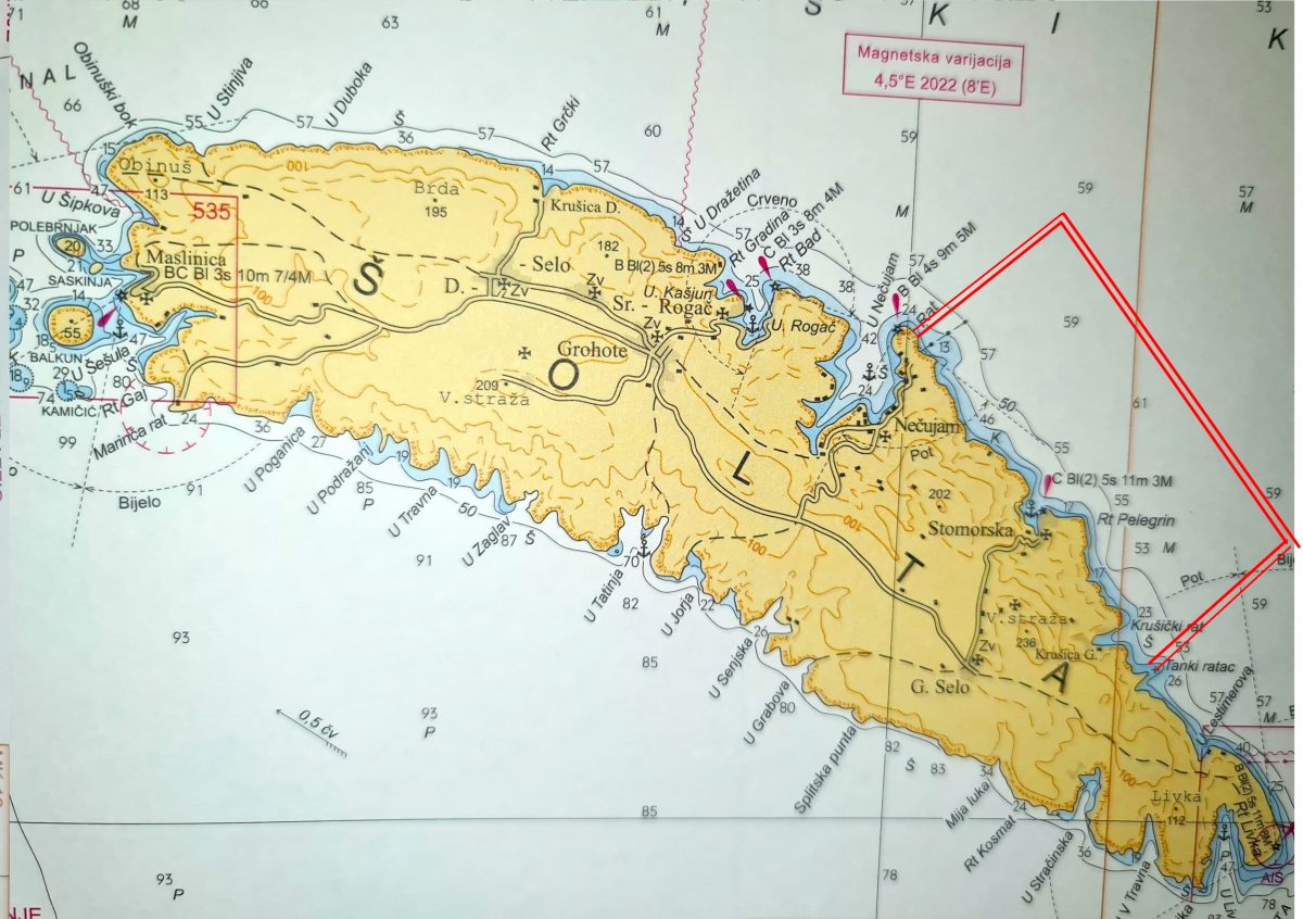 5. ZONA LOVA: Akvatorij Stomorske uz sjevernu obalu otoka Šolte u pojasu 1,5 NM udaljeno od obale